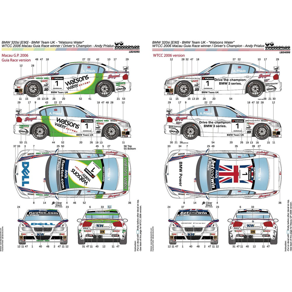 BMW 320si E90 BMW チーム UK WTCC 2006 マカオ・ギアレース ウイナー & WTCC ドライバーズ・チャンピオン#1 アンディ・プリオール デカール付属
