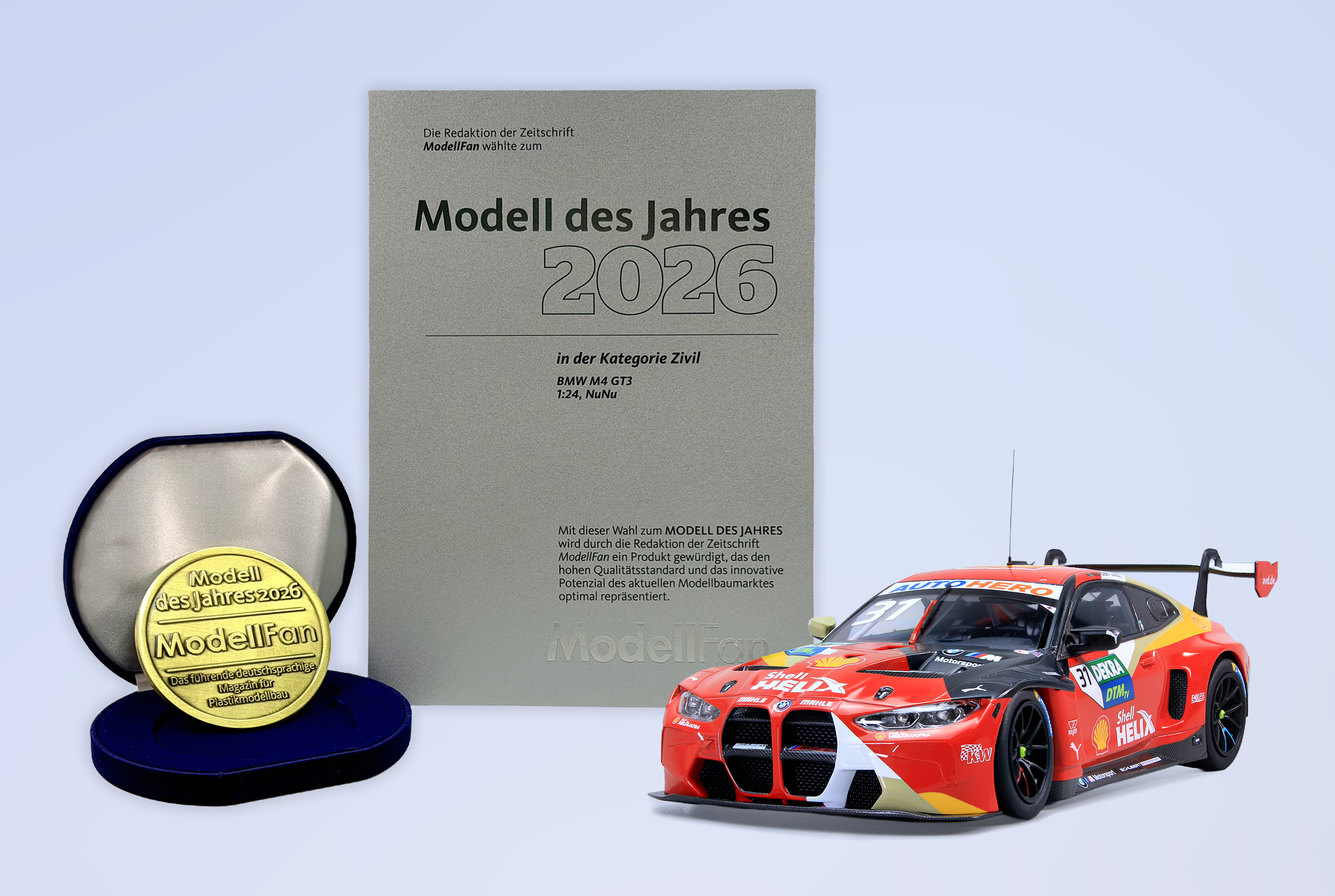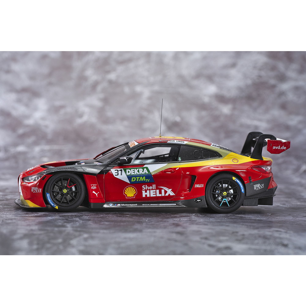 モデルは2022年のドイツ・ツーリングカー選手権、DTMで年間チャンピオンに輝いたシューベルト・モータースポーツチームのシェルドン・ファン・デル・リンデがドライブしたBMW M4 GT3を再現したプラスチックモデル組み立てキットです。