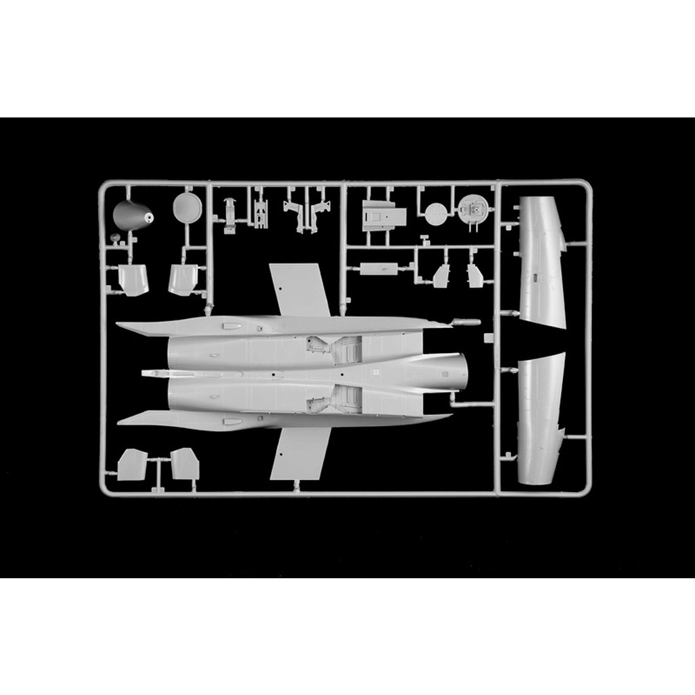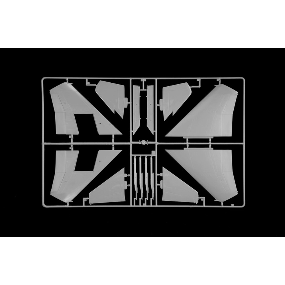 また、ノーズコーンは開閉を選択して組み立て可能。開いた状態で再現する場合は内部のレーダーパーツなども別パーツでセットされます。阻止Tえ、複座のコクピットはシート形状、ディテールも細かく表現。計器パネルやサイドコンソールの計器類はデカールで再現します。