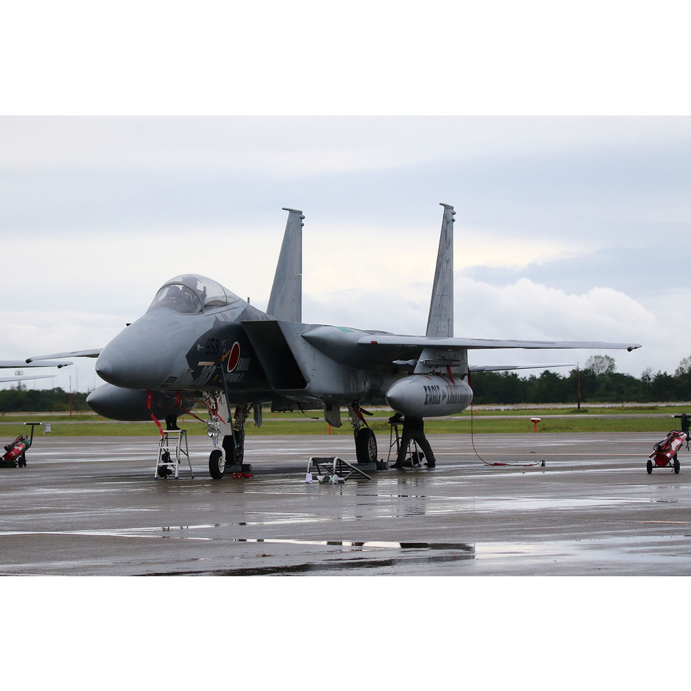 主力機F-15Jイーグルは1974年に実戦配備が始まったアメリカ空軍のF-15Cをベースに航空自衛隊の独自装備を施した機体で、独自の戦術電子戦システム、J/TEWSや同じく独自のデータリンクシステムなどを搭載しています。