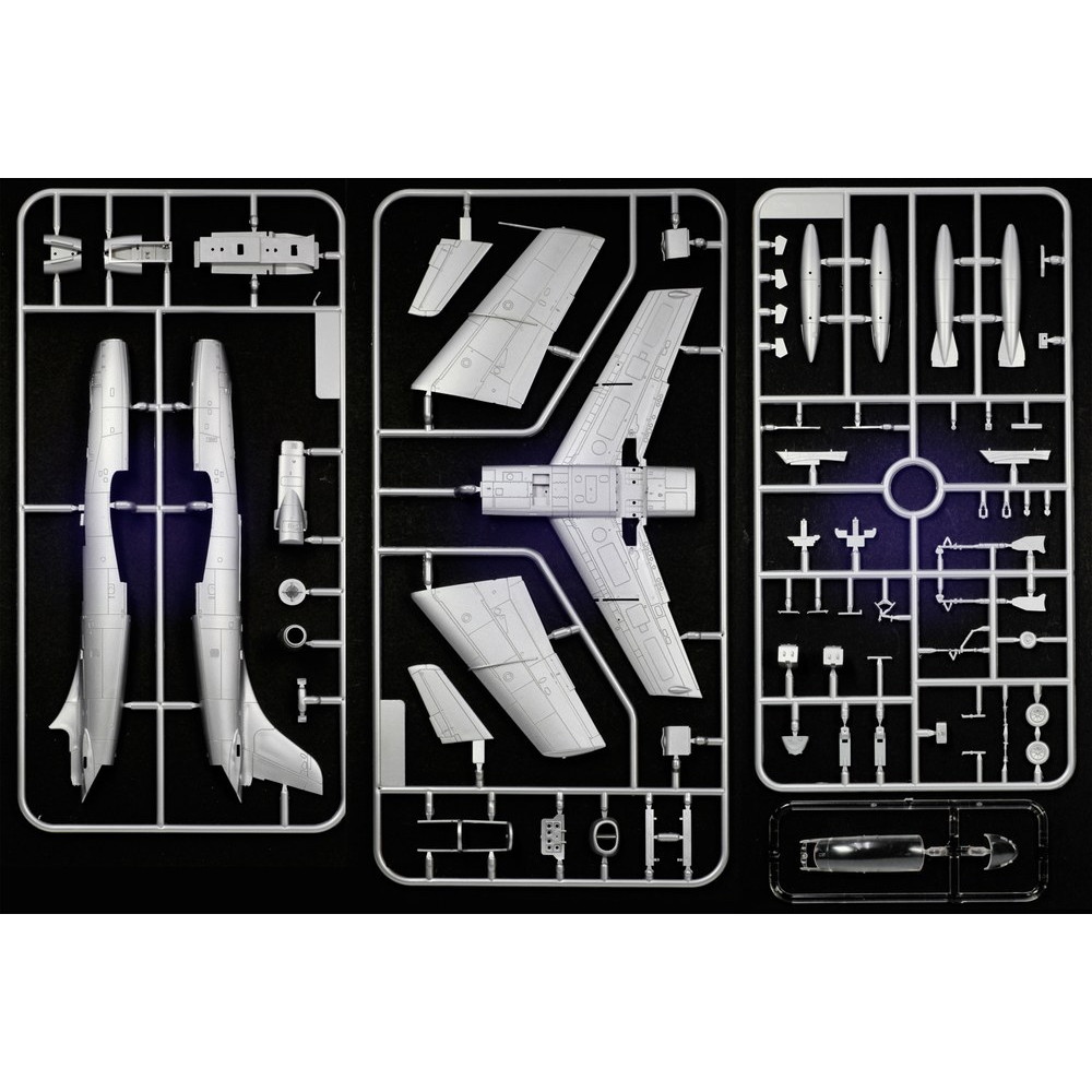 主翼下に装備可能な外部タンクも付属します。機体番号や各部のマーキングはイタリアカルトグラフ製の高品質デカールでセット。