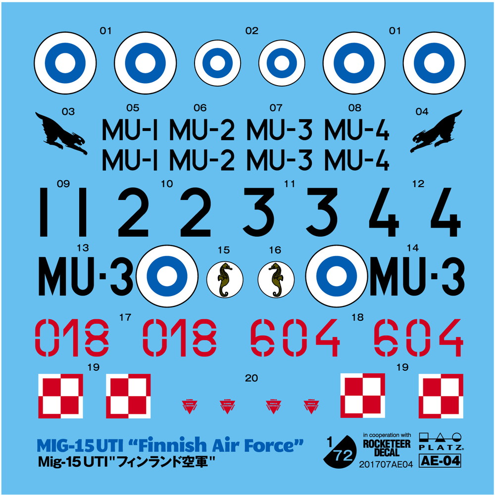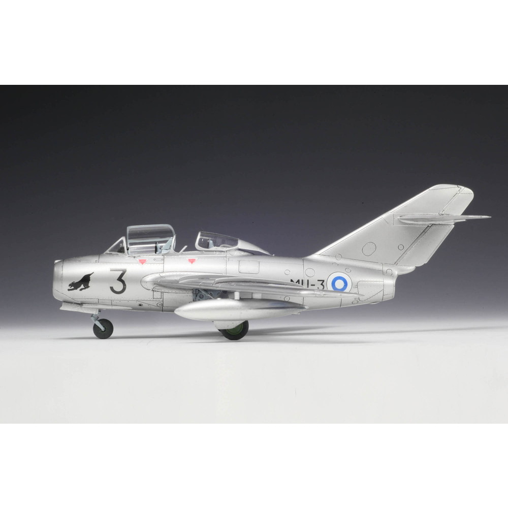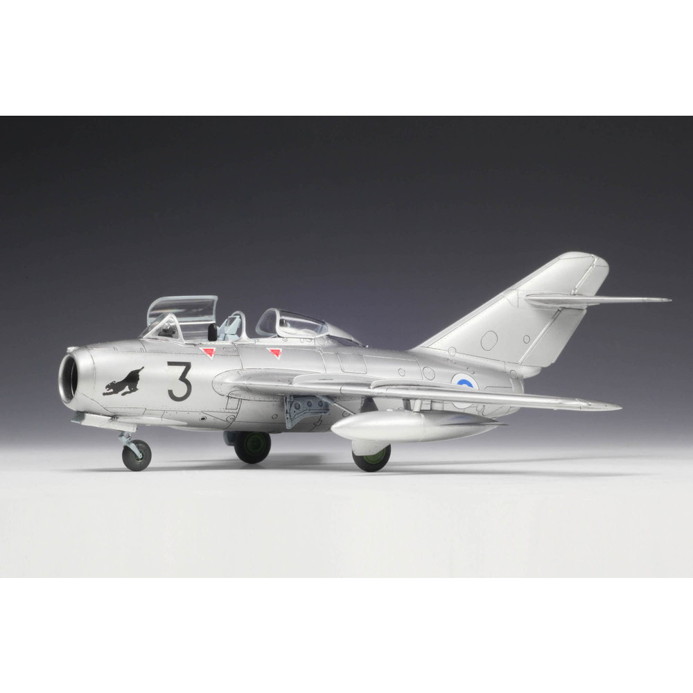 仕上がり全長約140mmで傑作機の特徴を再現します。世界各国で幅広く使用されたミグ15はマーキングも魅力ですがこのキットでは北欧のフィンランド空軍機のマーキングをセレクト。