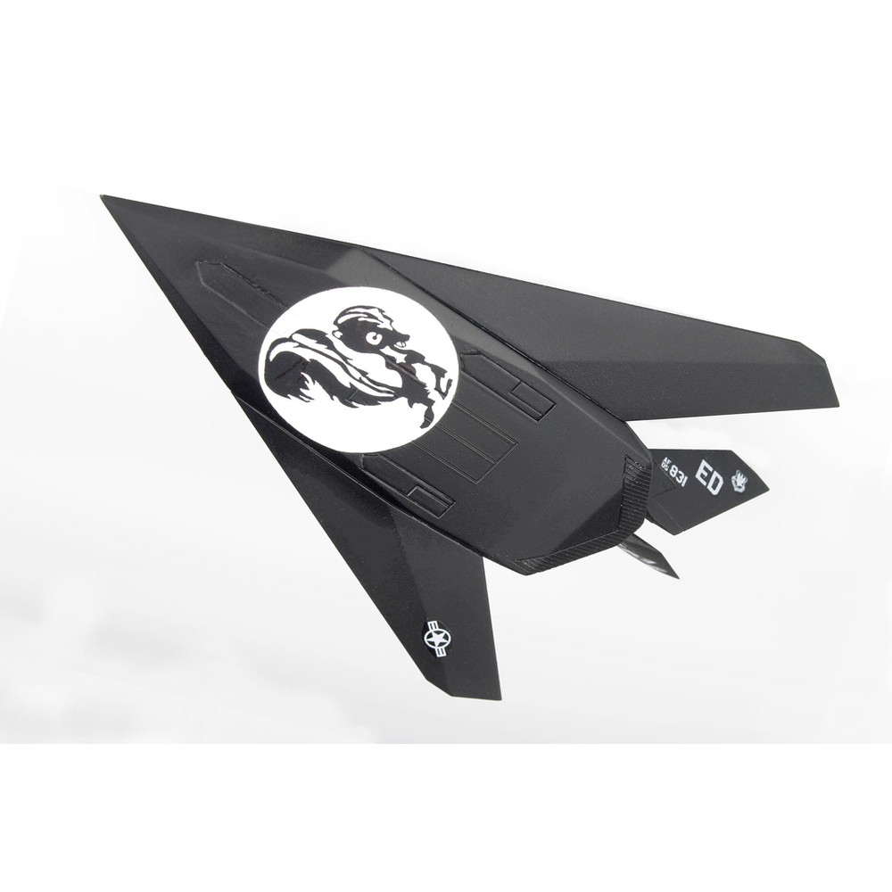 飛行状態と駐機状態を選択して組み立て可能です。マーキングは設計開発を担当したスカンクワークスのマークが機体下面に描かれた機体と湾岸戦争で活躍した機体のマーキングをセット。