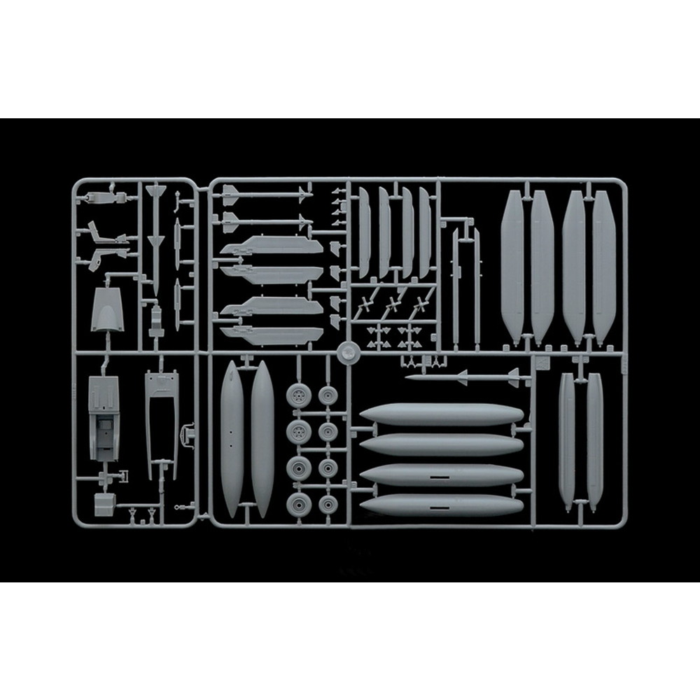 さらに、昇降用のラダーも出した状態、格納した状態を選んで組み立てていただけます。そして、機体下面に装備されるレーダー妨害ポッドや電子線ポッド、増槽をはじめ、ミサイルなどもセット。