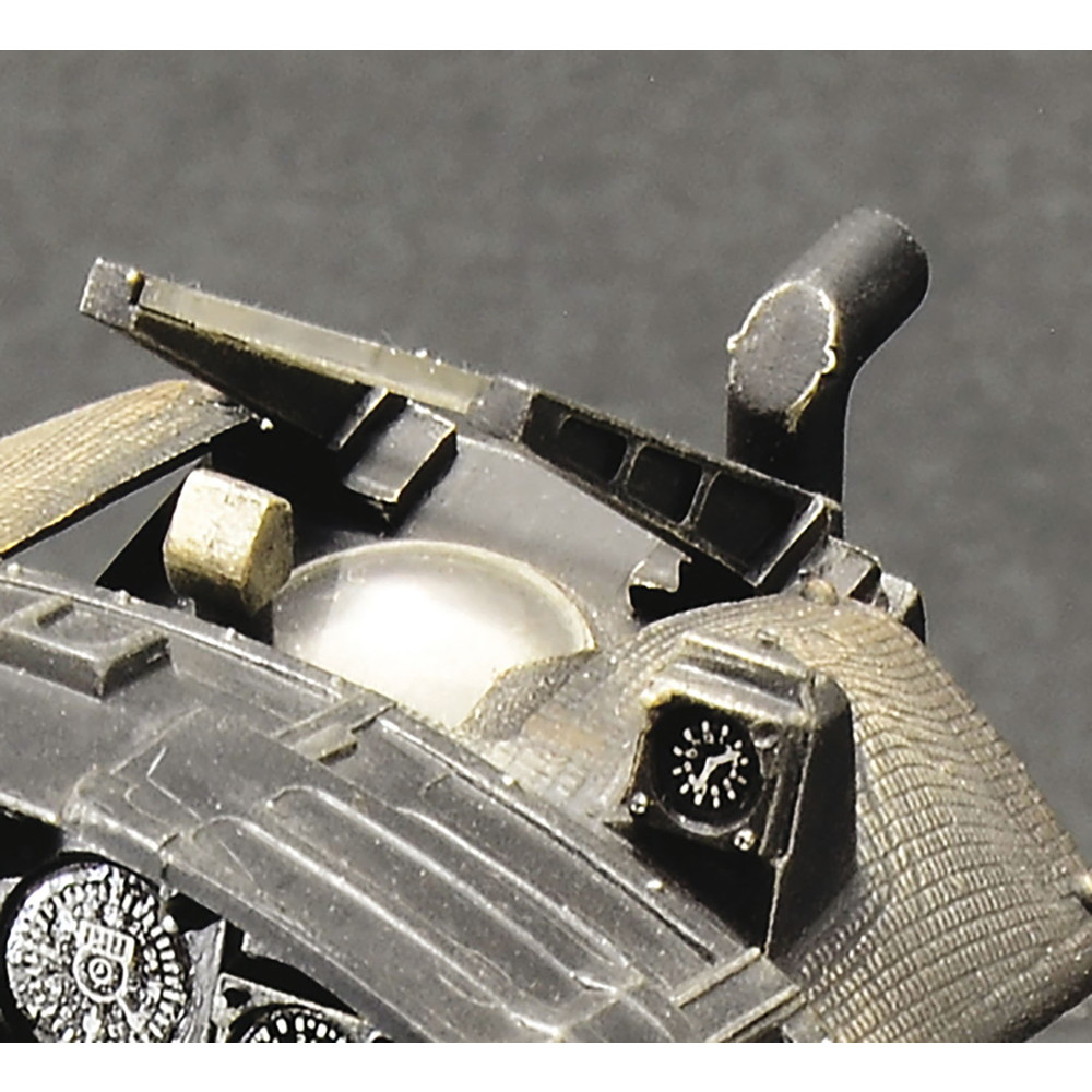 シートはマーティンベーカーMk.IQ射出シートを細部に至るまで細かく再現して実感も十分な仕上がりが楽しめます。メーターパネルは当時のアナログ計器のメーター類がズラリの並んだ仕上がり、時代の違いも感じられます。