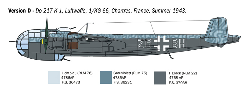 空対艦誘導爆弾「フリッツX」を搭載するDo217K2タイプをモデル化しています。