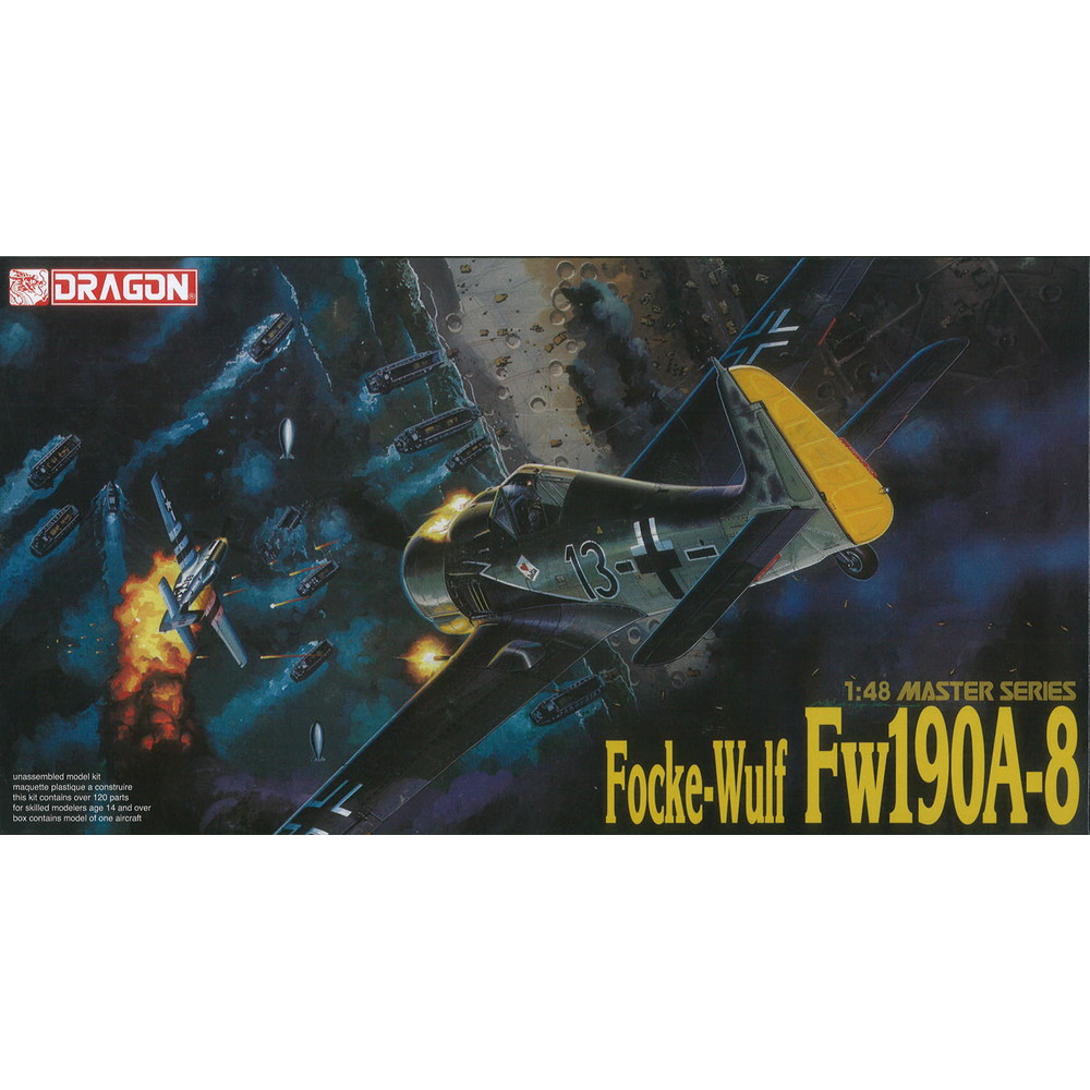 第二次大戦でドイツ軍が配備した戦闘機、フォッケウルフFw190の中でもっとも生産されたA-8タイプを1/48スケールで再現したプラスチックモデル組み立てキットです。