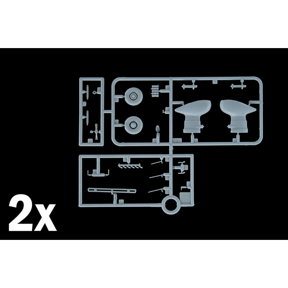さらに、胴体や翼下に搭載される兵装類も豊富にセット。マーキングはイタリア空軍機3種とイギリスが鹵獲して飛ばした機体1機とドイツ空軍機1機の計5種のマークをセットしています。