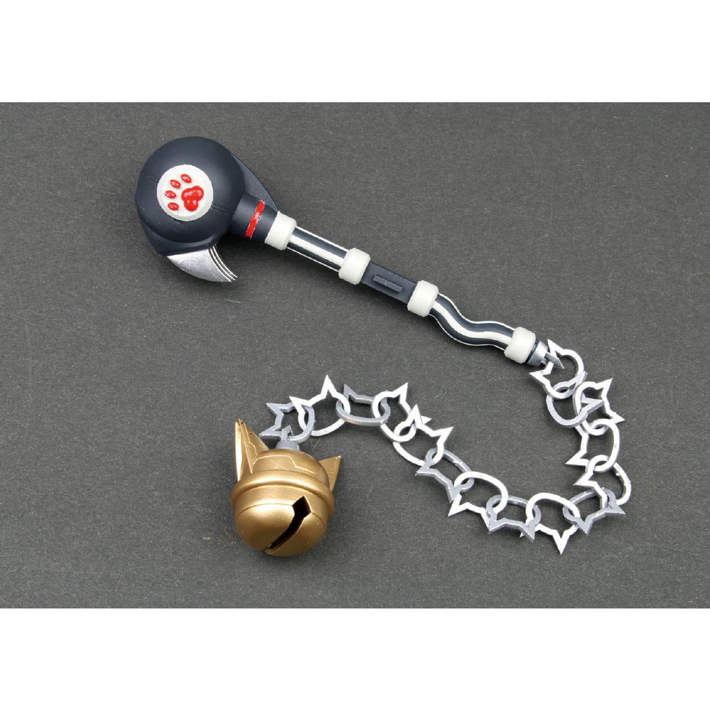 そして鎖と先端に装備される分銅は猫をイメージしたデザインを採用。連結された状態で一体プリントされ、切り離すだけで長さ約20cmのリアルな鎖が完成するのは3Dプリントパーツの威力。