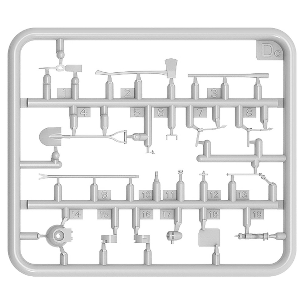 このセットでは人が手で使うさまざまな道具、工具を再現しています。スケールは1/35。
