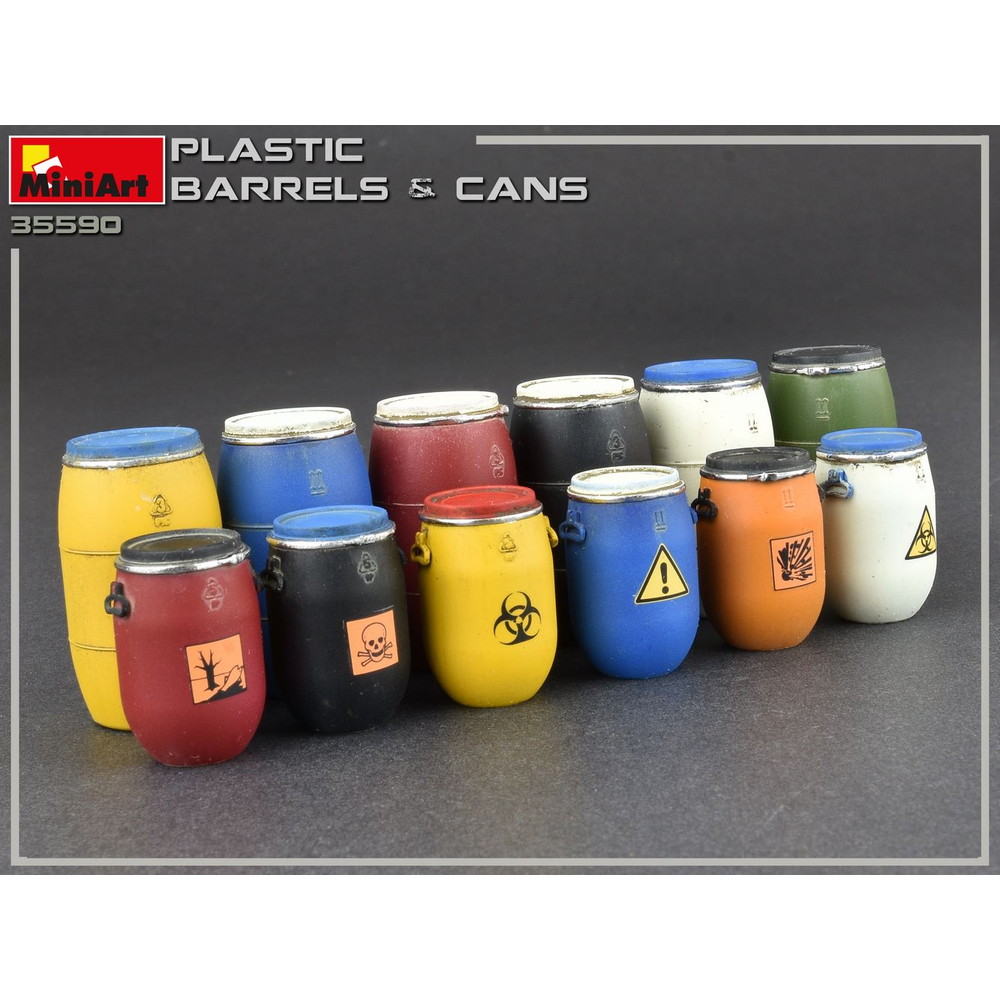 樹脂製のドラム缶タイプの大型タンクが2種類のサイズで各6個とジェリカンタイプの小型タンクが12個セットされています。それぞれ形状や口などのディテールもしっかりと再現。