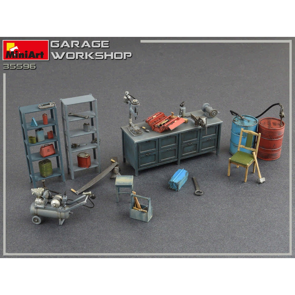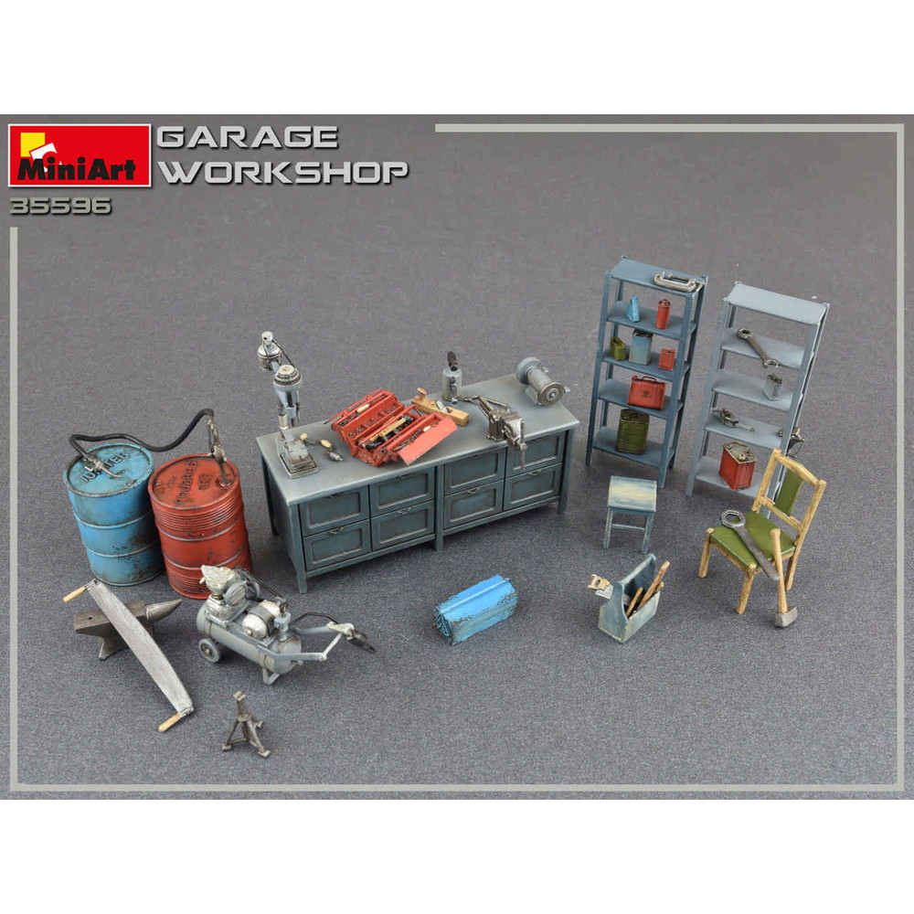 コード:4545782124811 【商品について】 ガレージ情景に息を吹き込む・整備工場、ガレージの作業場を再現するのに必要な機材を1/35スケールで再現した組み立てキット パッケージサイズ:290x190x45 mm