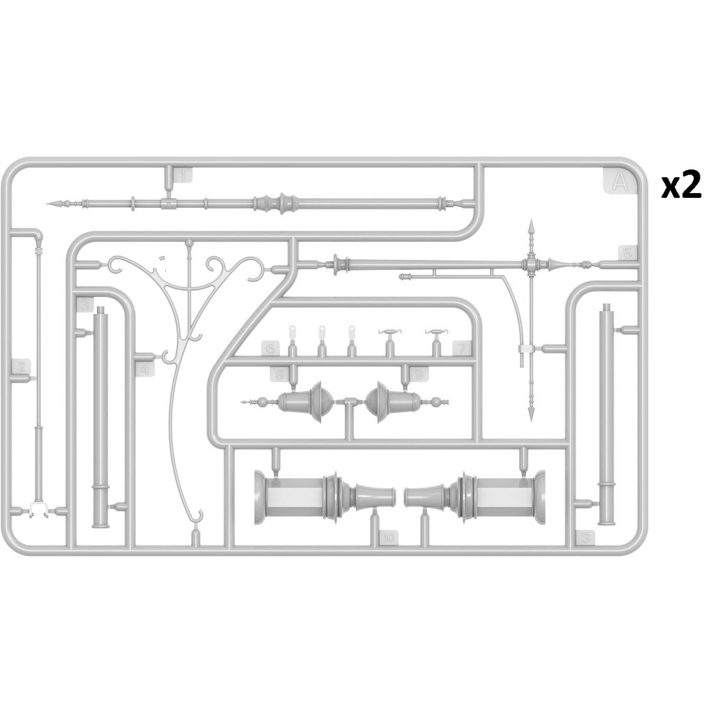 ミニアートから発売中の路面電車のモデルを組み合わせての情景作りも楽しみです。もちろん路面電車に欠かせない架線を支える支柱のパーツもセット、架線を支える部分のデザインされた形状もしっかりとモデル化され、ヨーロッパの雰囲気を演出します。