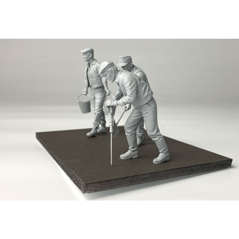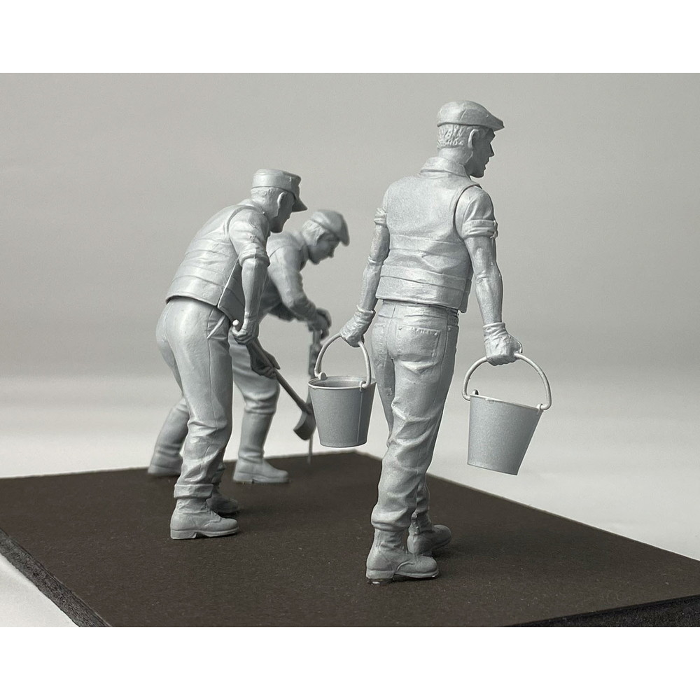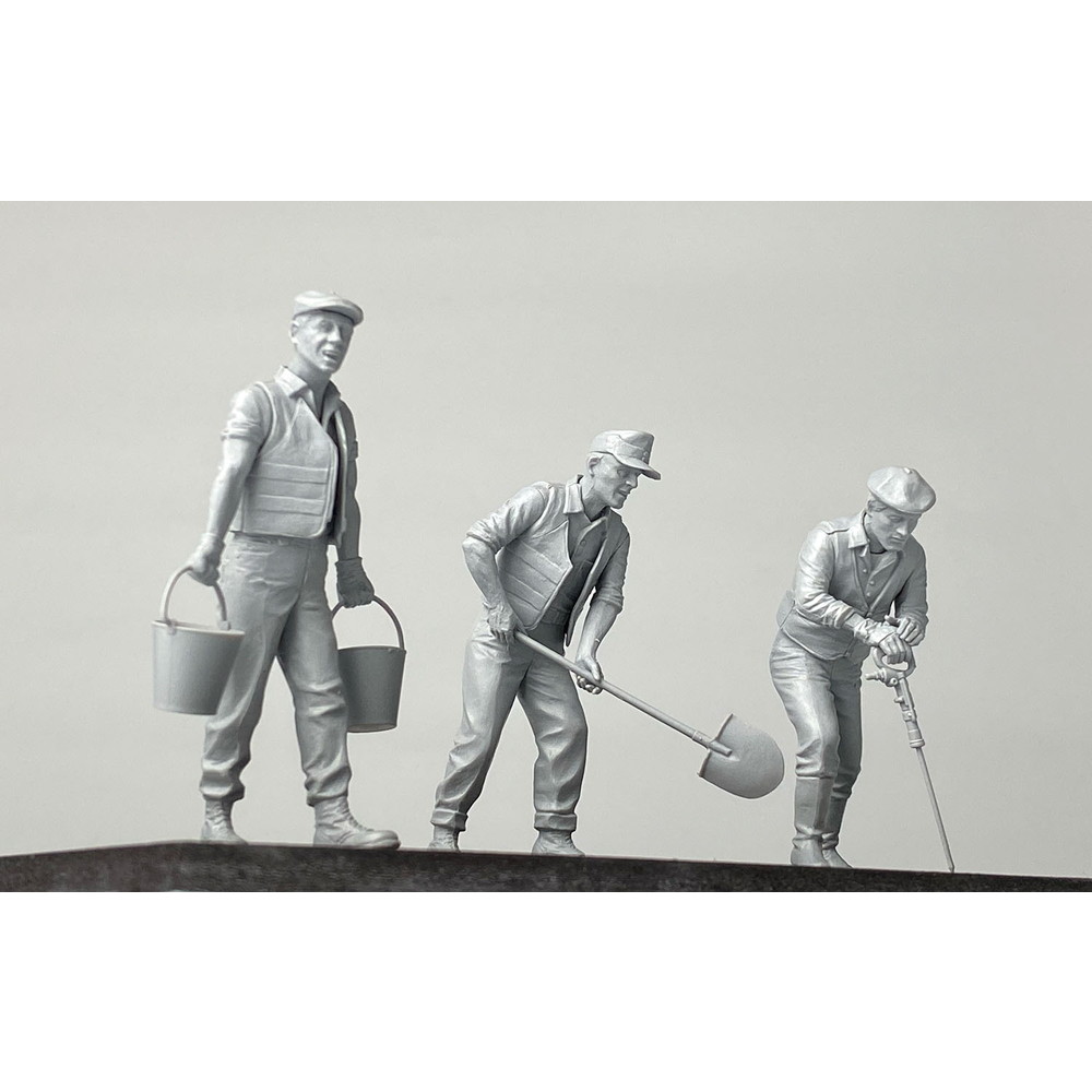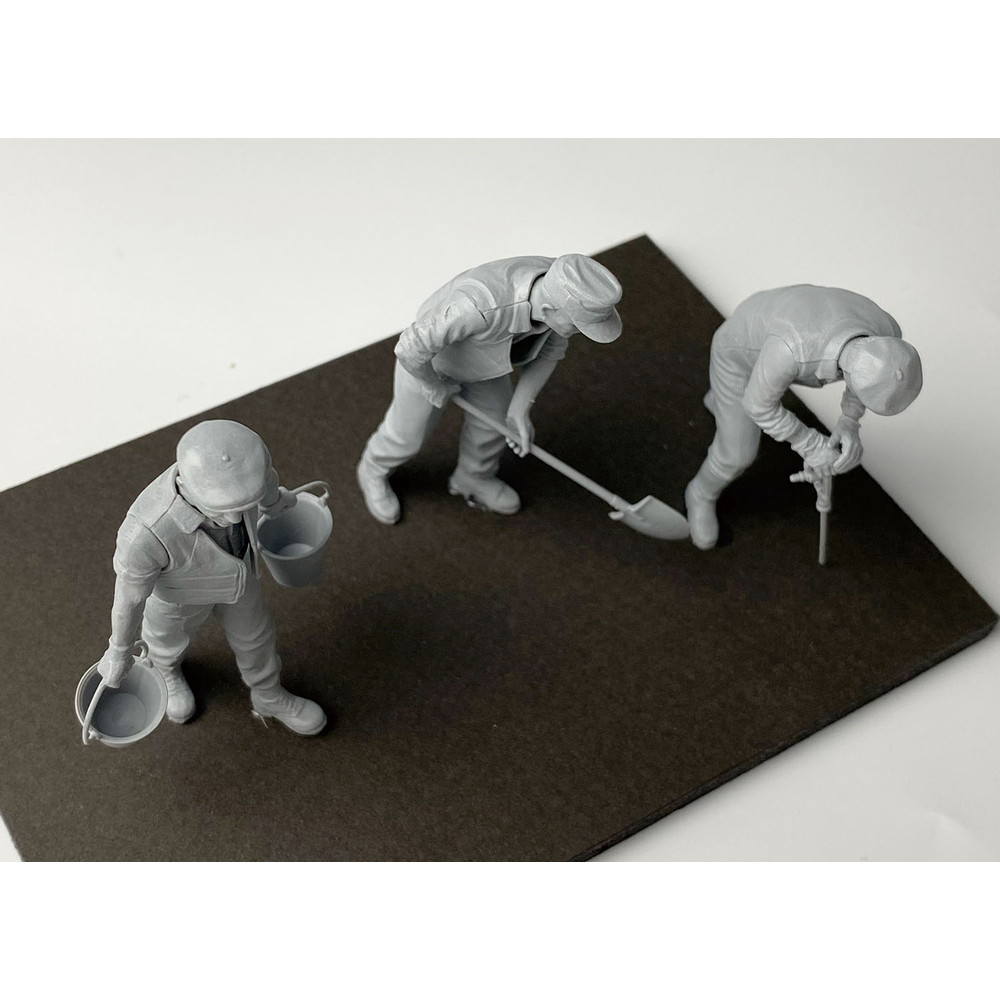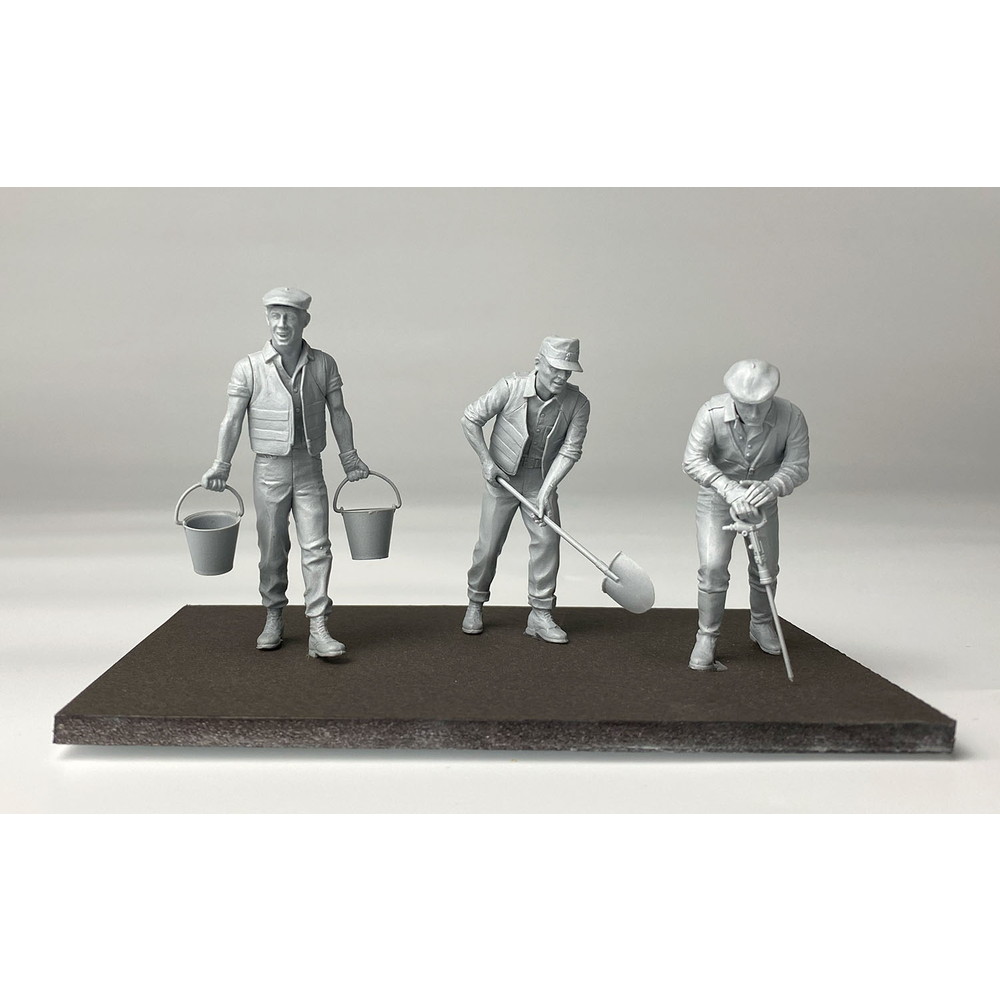 このセットでは現代のフランスの道路補修工事をする作業員を再現しています。フィギュアは3体。掘削機を操作して舗装を取り除く作業をするフィギュアとスコップで土をいれる作業をするフィギュア、さらに、バケツに土地を入れて運ぶフィギュアの3体セット。