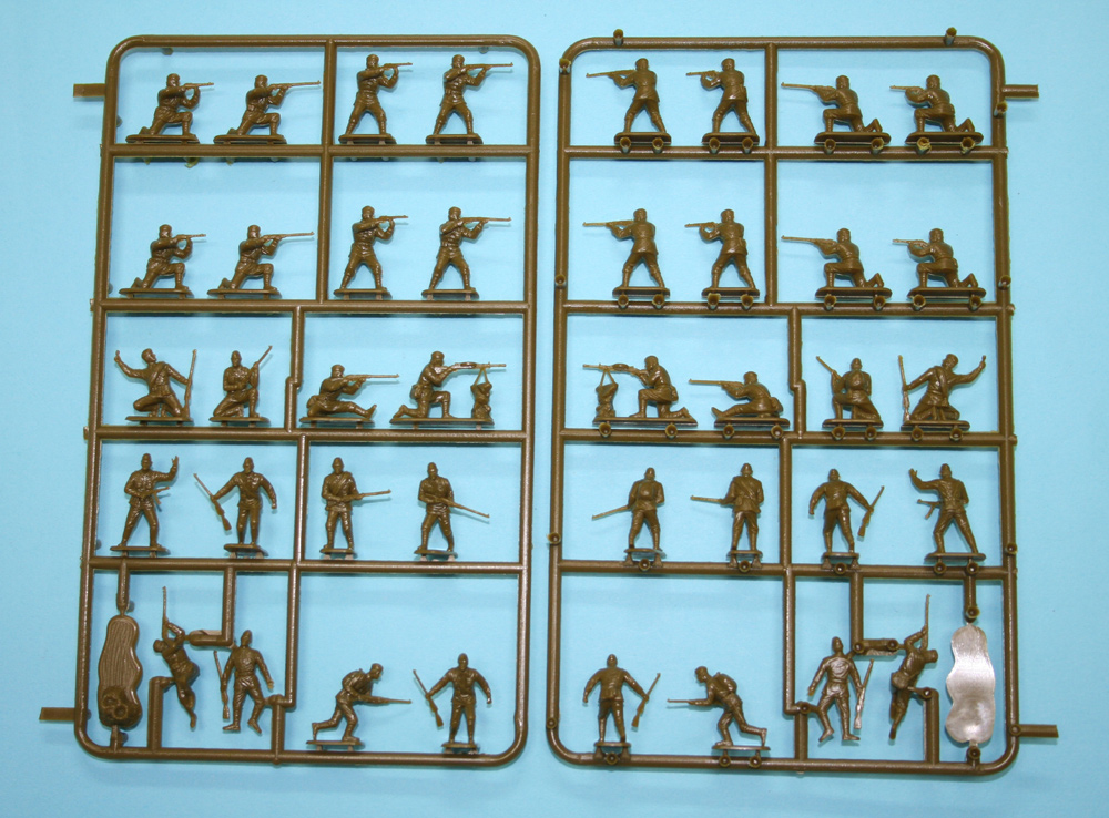立膝で射撃するポーズや立ち姿勢のまま射撃するポーズ、あるいは伏せて射撃するポーズや手りゅう弾を投げようとしているポーズなど、15のポーズで合計40体のフィギュアをセットしました。