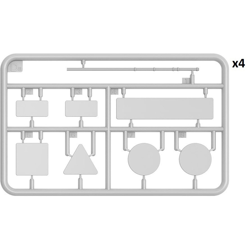 標識はポールと表示版をプラスチックパーツでモデル化。様々なサイズや形状の表示版をセットしています。