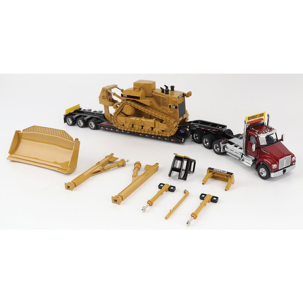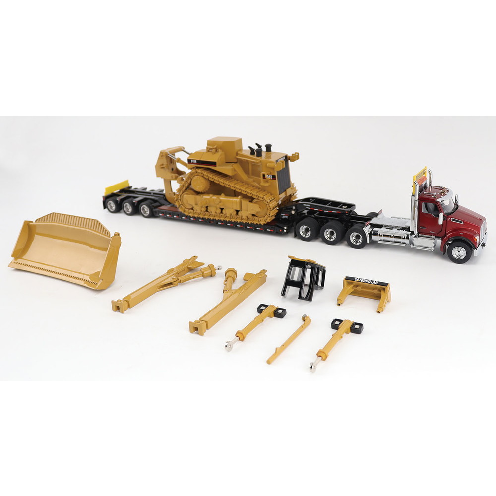 ケンワース 880 デイキャブ タンデム&トライアルキングTK120 ローボーイトレーラー&キャタピラー CAT 11R ブルドーザー セット ダイキャストモデル完成品
