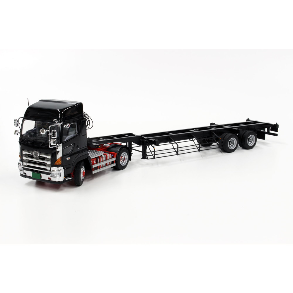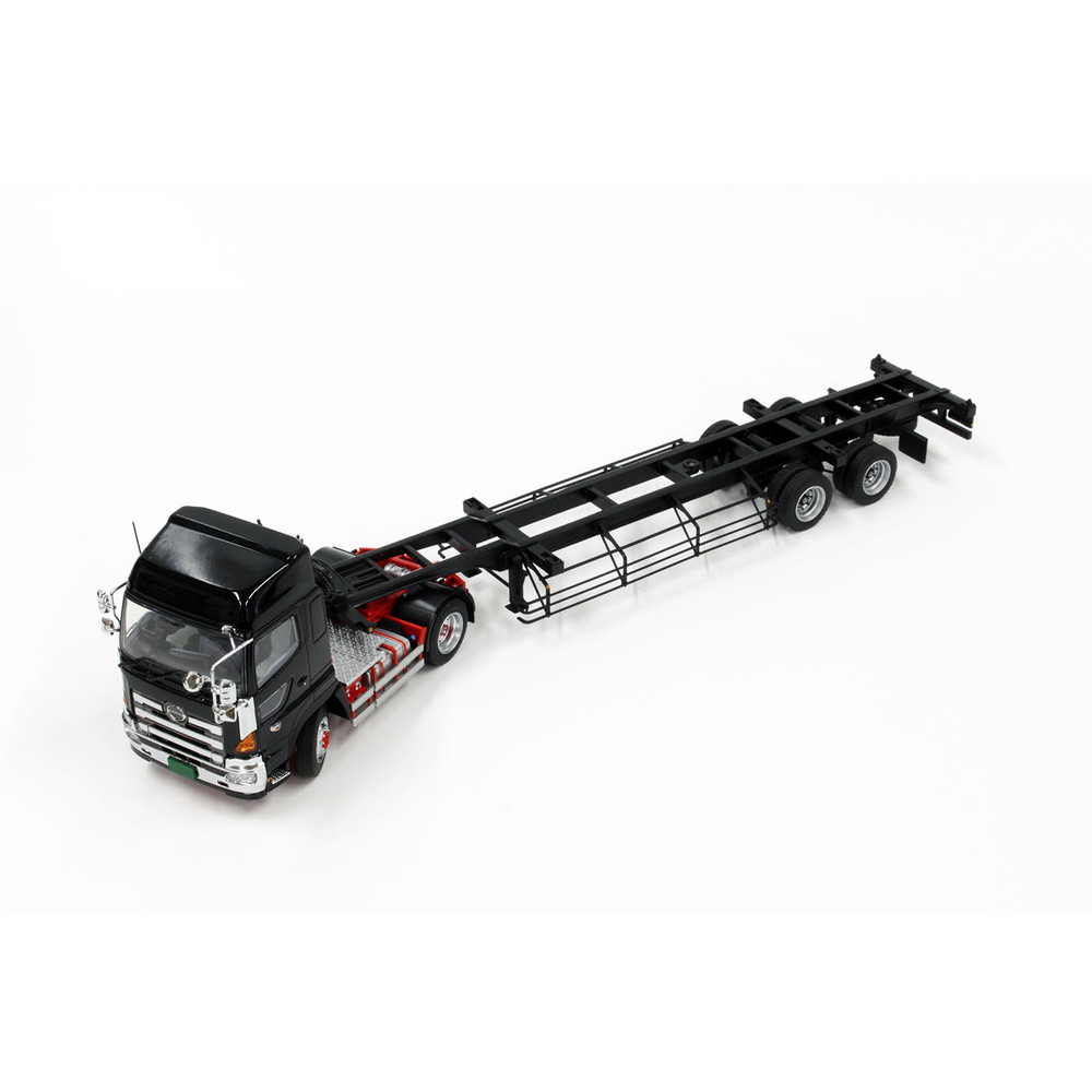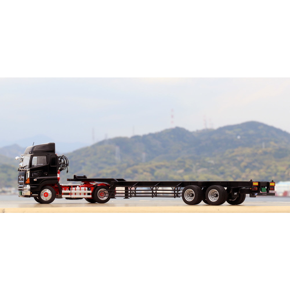 ●海上コンテナを陸上で輸送するための専用のトレーラ(黒色)を1/50スケールで再現