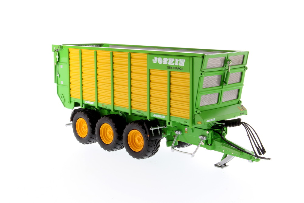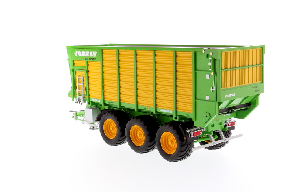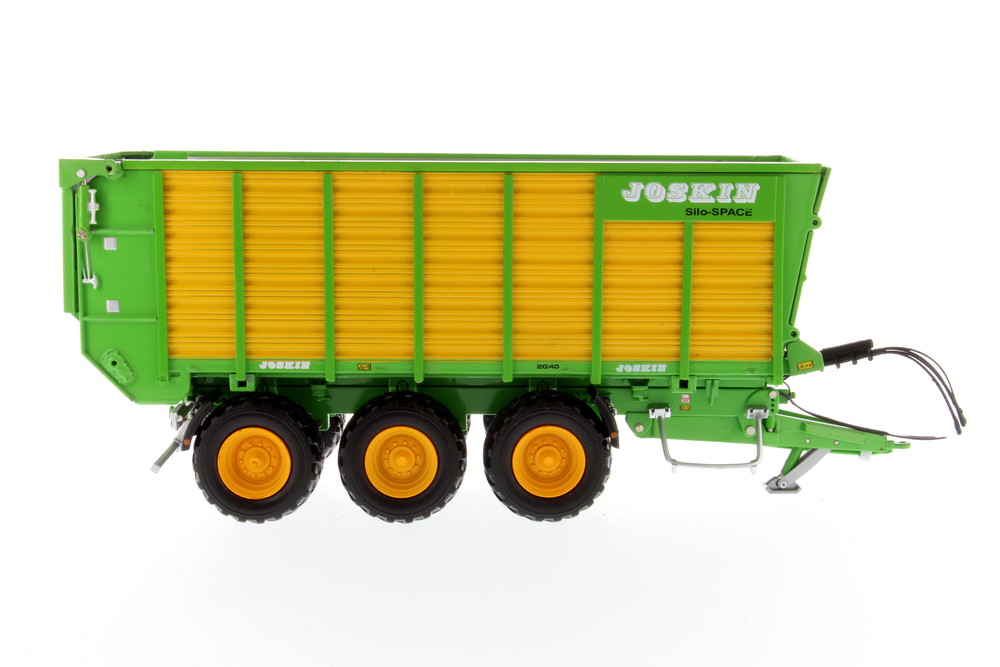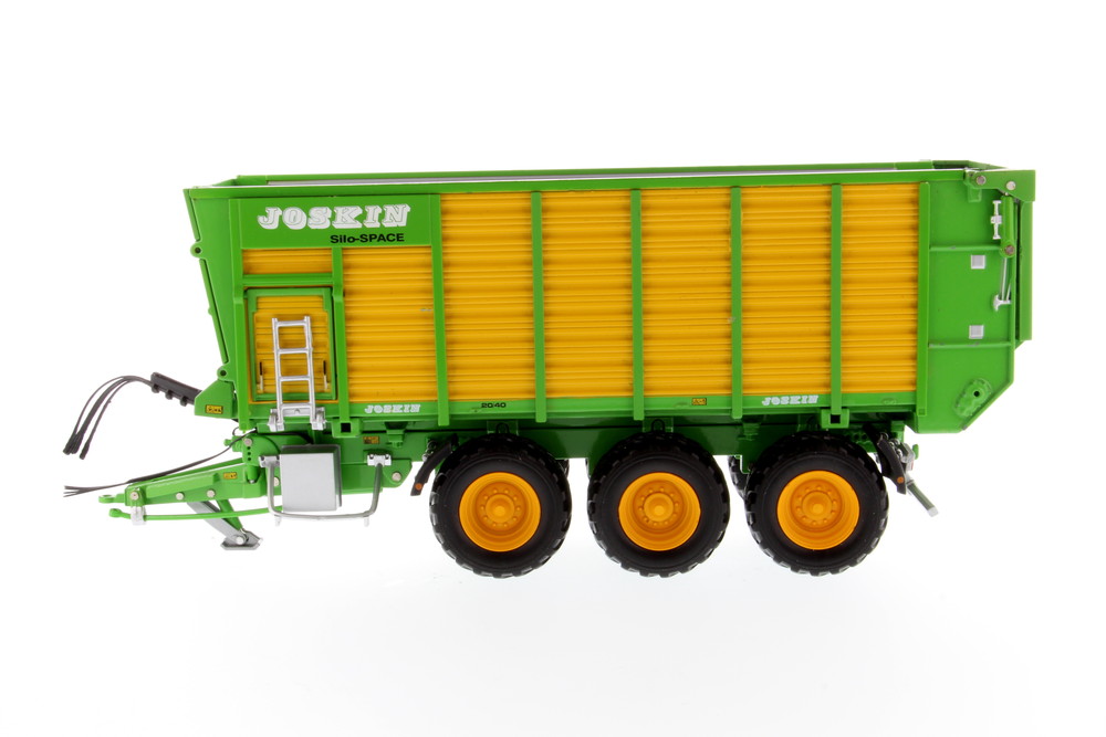 1968年に創業、農作物を積載するカーゴトレーラーやスラリータンカーなどを、さまざまな革新的な技術をくわえて開発するベルギーの農機具メーカー、ヨスキン社が生産する貨物コンテナがサイロスペースです。収穫した穀物などの運搬に活躍。ヨスキン社のサイロスペースは積載物をおろすときに便利なリヤドアの大きなクリアランスをはじめ、チェーンと油圧モーターで動く床面のシステムで高い評価を集めています。サイロスペースのモデル20/40タイプは容積約40㎥のキャパシティを持ち、トラクターで牽引して移動。世界の農家で使用される、実績あるカーゴです。