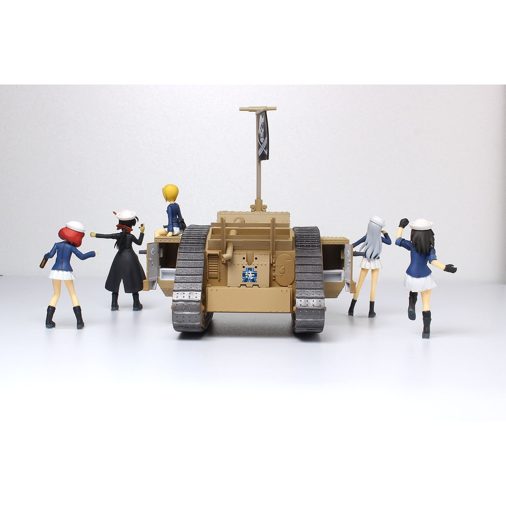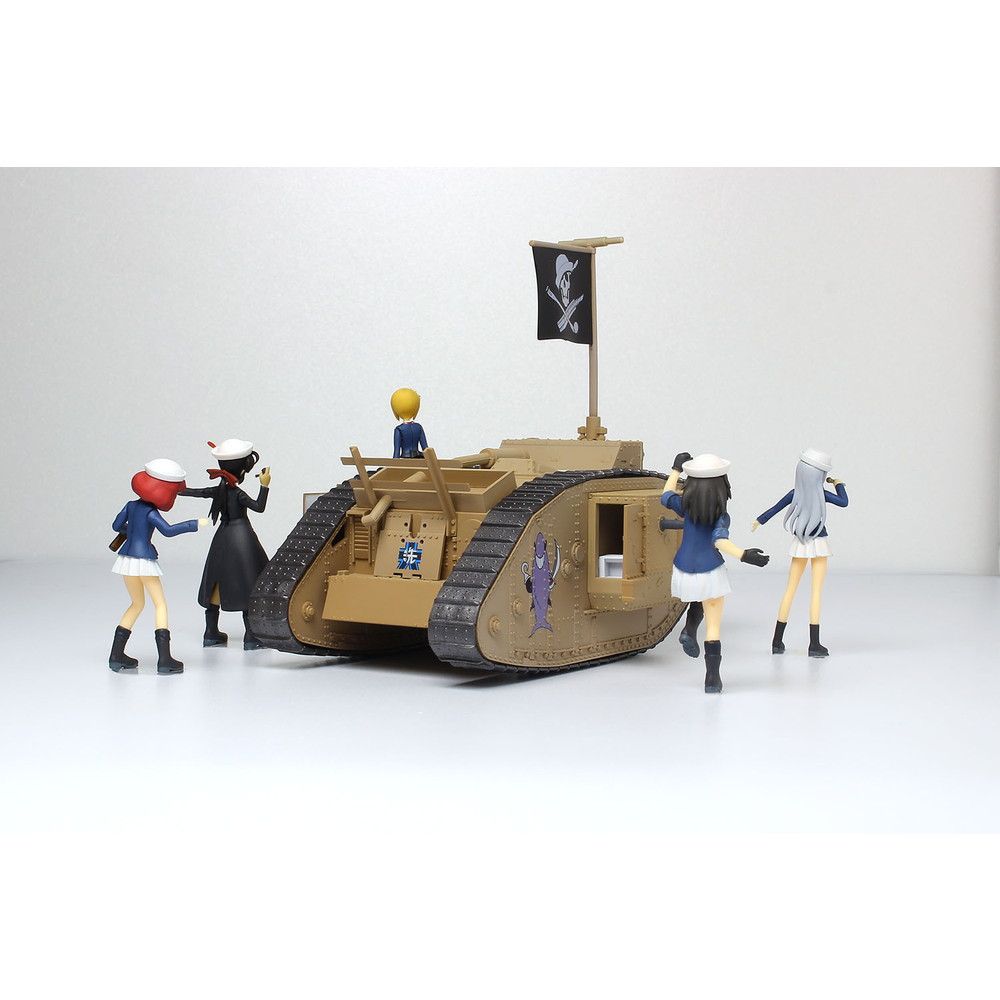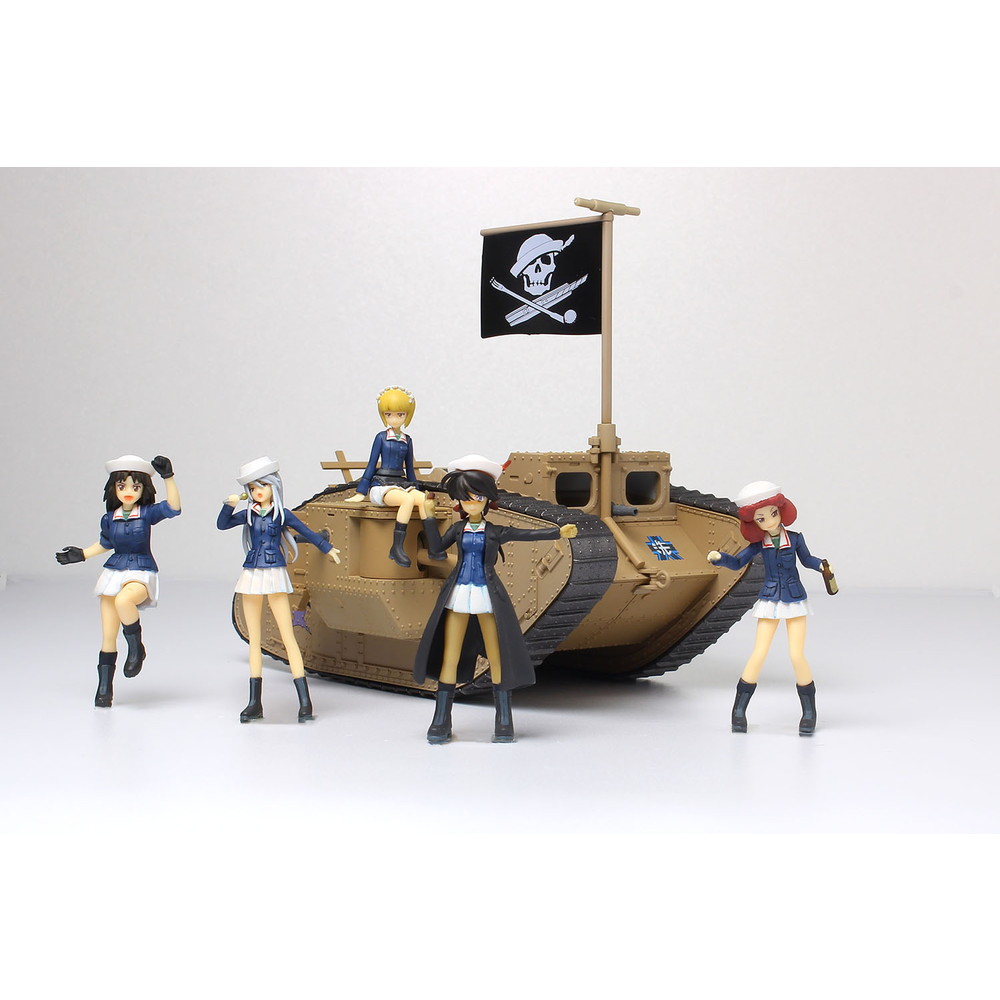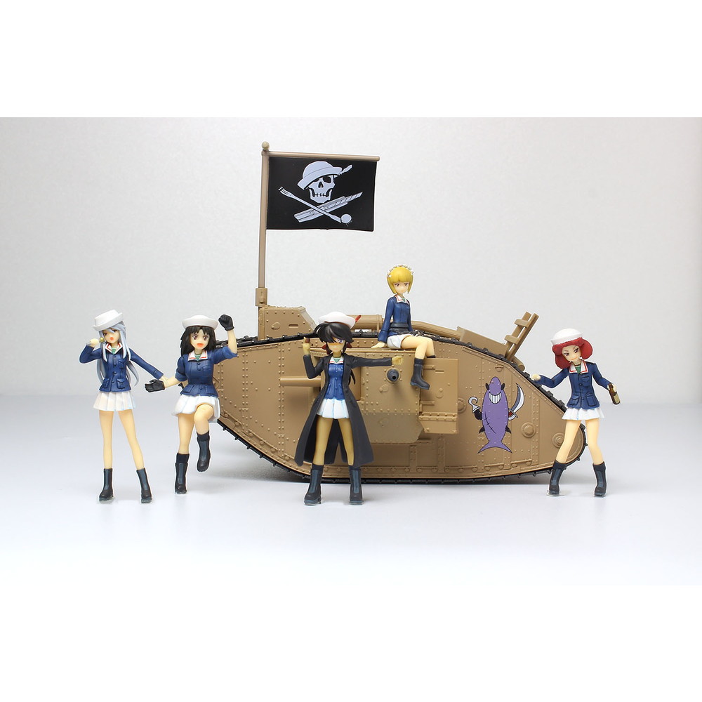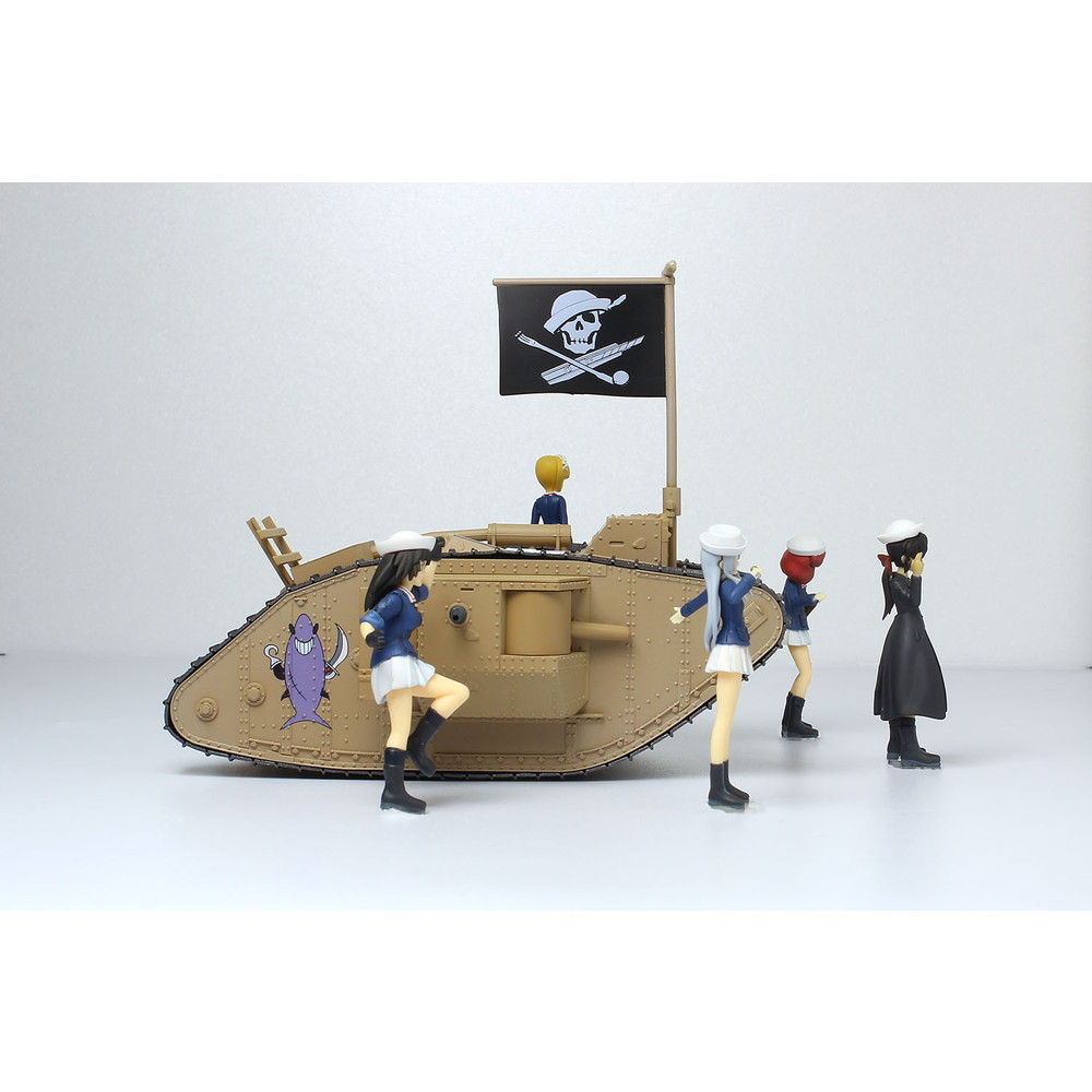 最終章 第3話が公開され、7月からはBS12トゥエルビでTVシリーズの放送も決定。ますます盛り上がりを見せる中、 プラッツのガールズ&パンツァーのラインアップに楽しいキットが加わります。大洗女子学園の船舶科チーム、 サメさんチームのMk.Ⅳ戦車の塗装済み完成モデルに1/35スケールでモデル化されたフィギュアをセット。