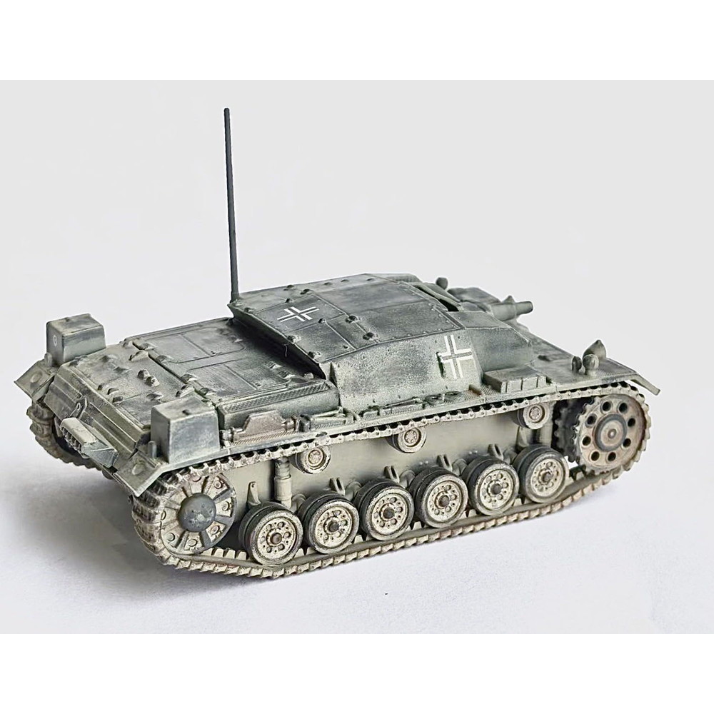 モデルは第二次世界大戦で活躍したドイツIII号突撃砲の初期生産型、A型を再現した1/72スケールのプラスチックモデル組み立て塗装済み完成モデルです。