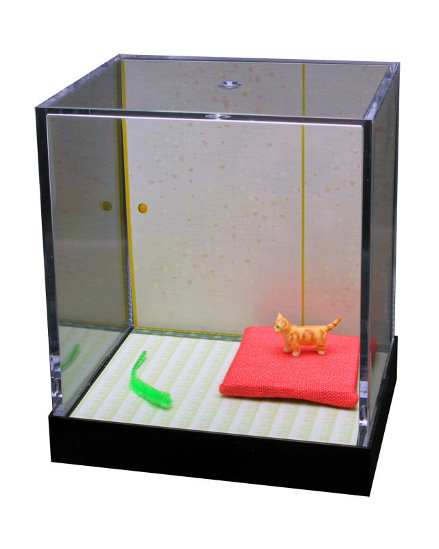 1/12スケールのドールハウスサイズのフィギュアを透明のケースに入れた【ネコのいる空間】を再現。