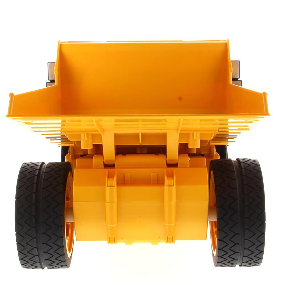 前後進はもちろん前輪のステアリング操作で左右にハンドリングも可能。そして、車体後部に装備するダンプベッドはコントローラーの操作で上下に上げたり下げたりが楽しめます。