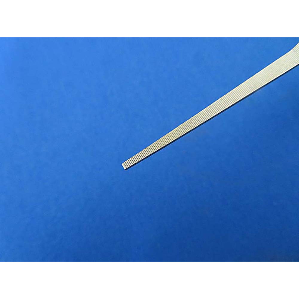 従来のヤスリはタガネを打ち込むと目の底がV字で削りカスの逃げが悪くなり、目詰まりの原因になるが、CNCフライスで切削された目は底が丸く、広くなり、目詰まりが皆無に等しくブラシ等で払うと簡単に取り除くことができます。