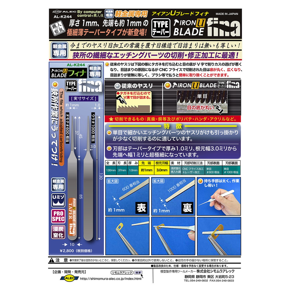 ※職人堅気 軽金属専用ヤスリ アイアンUブレード フィナ テーパー(AL-K244)の発売に合わせ、職人堅気 軽金属専用 鋼ヤスリ アイアンUブレード フィナ(AL-K126)は廃盤となります。