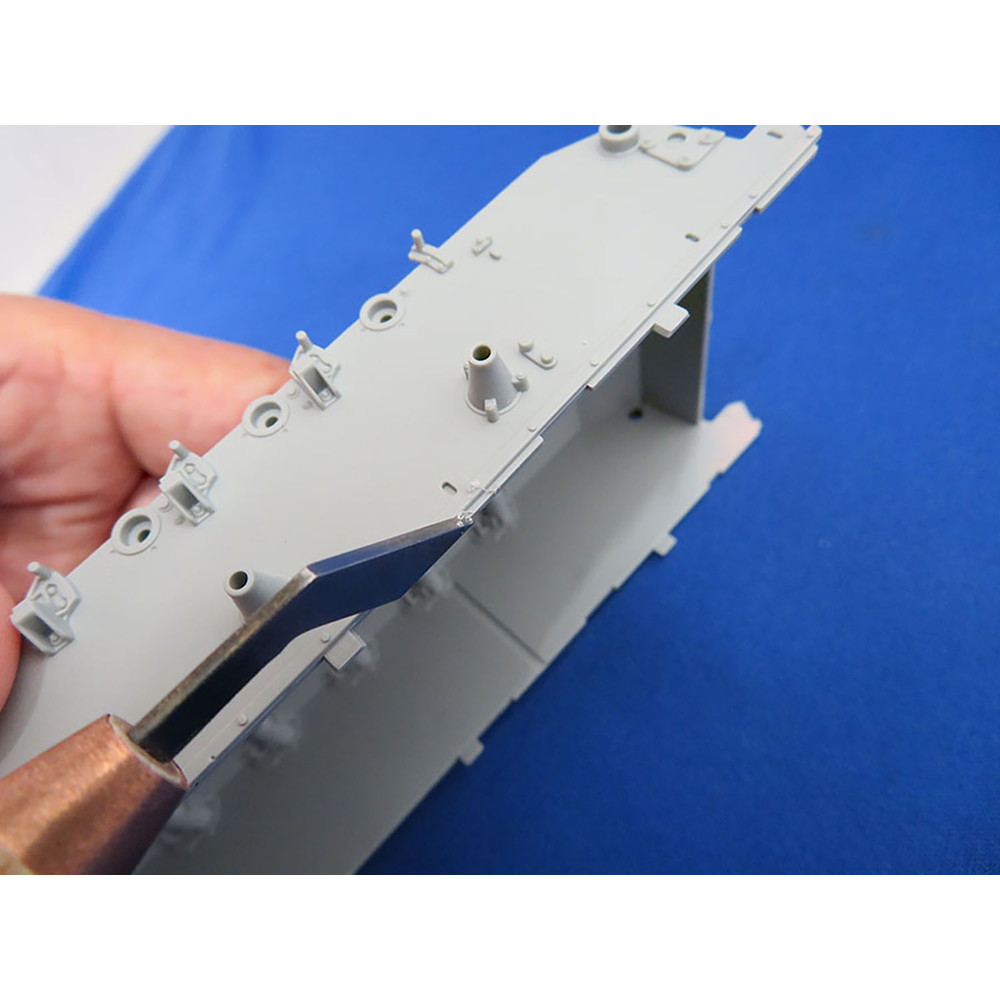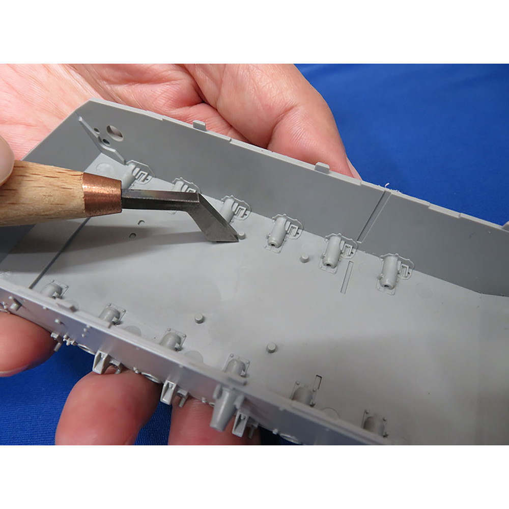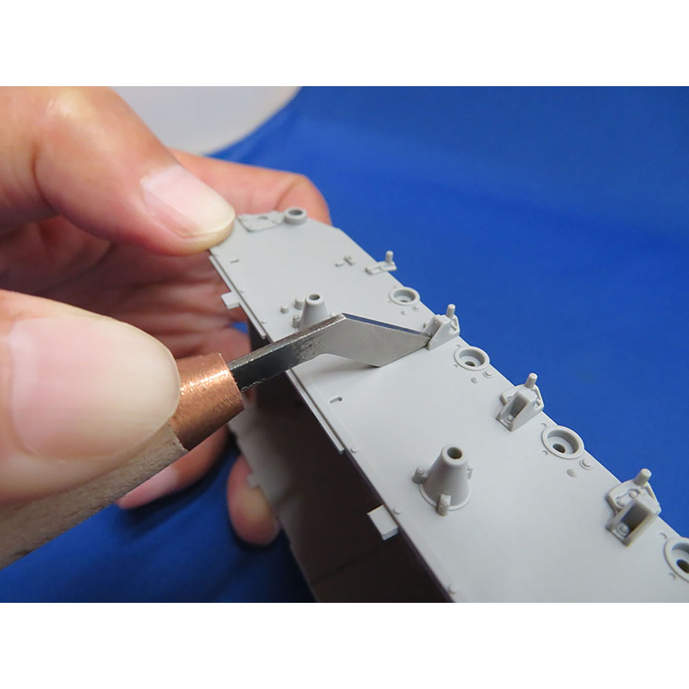 特異な刃形状で対象の面にピッタリと沿うことが出来、突起物を綺麗にかつ簡単に処理が出来ます。