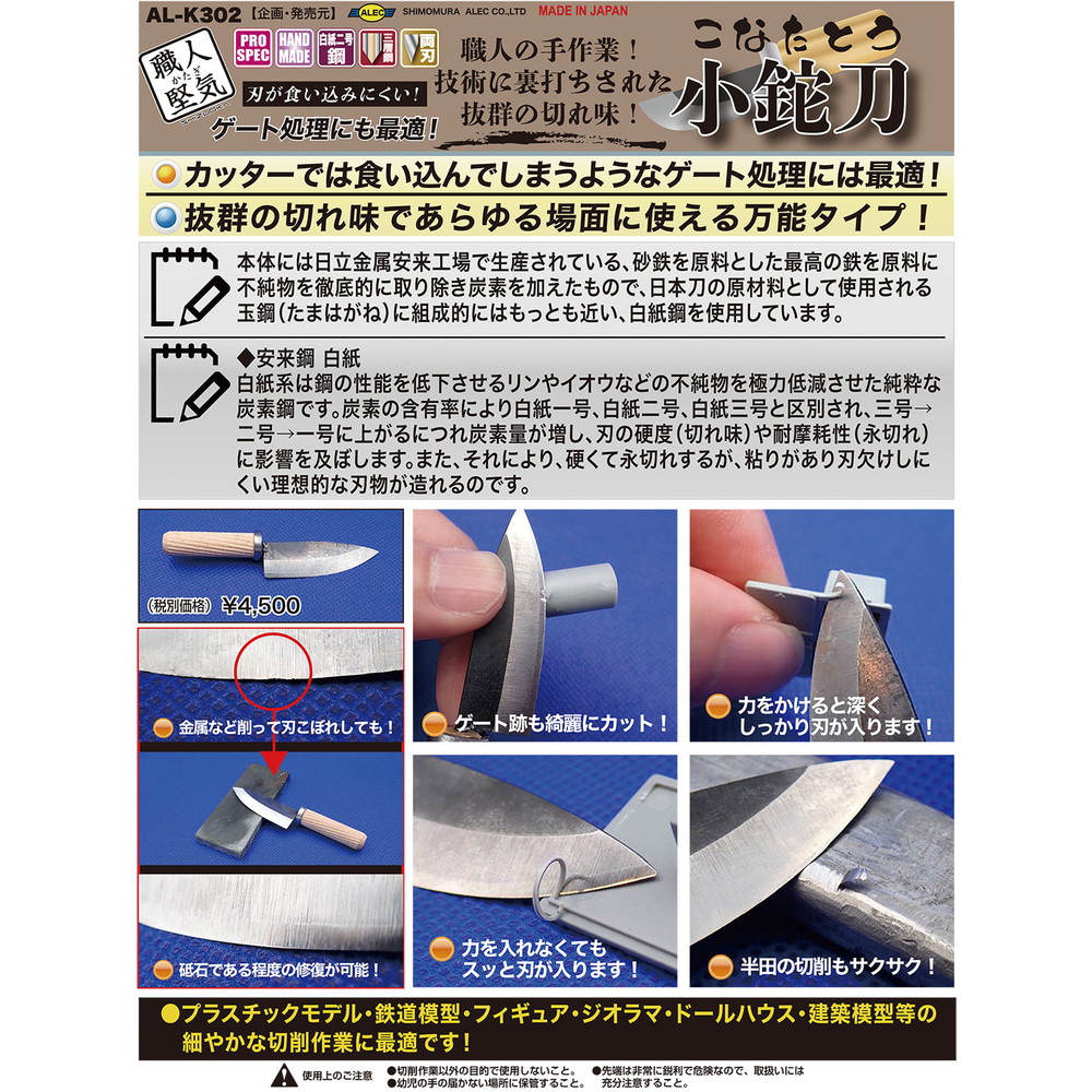 コード:4562256114352 【商品について】 職人の手作業!技術に裏打ちされた抜群の切れ味! 【主な特徴】 ●カッターでは食い込んでしまうようなゲート処理には最適! ●抜群の切れ味であらゆる場面に使える万能タイプ! パッケージサイズ:105×215×20mm 製品サイズ:全長約90mm