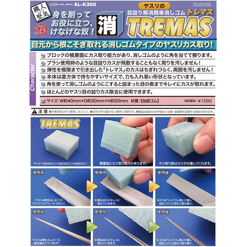 ※職人堅気 目詰まり解消簡単消しゴム「トレマス」(AL-K300)の発売に合わせ、職人堅気 目詰まり解消簡単消しゴム「トレマス」(AL-K220)は廃盤となります。