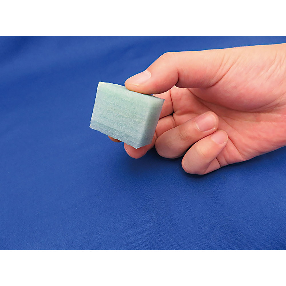 ●ブロックの積層面にカス取り能力があり、消しゴムのように角を当てて擦ります。