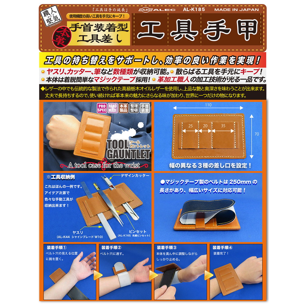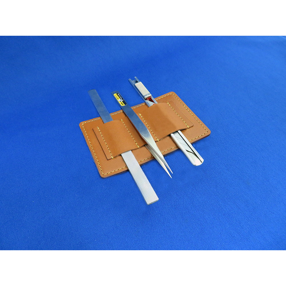 手首に装着する簡易式ツールケースでヤスリやピンセットなどを必要に応じてセレクトして差し込んで使用できます。