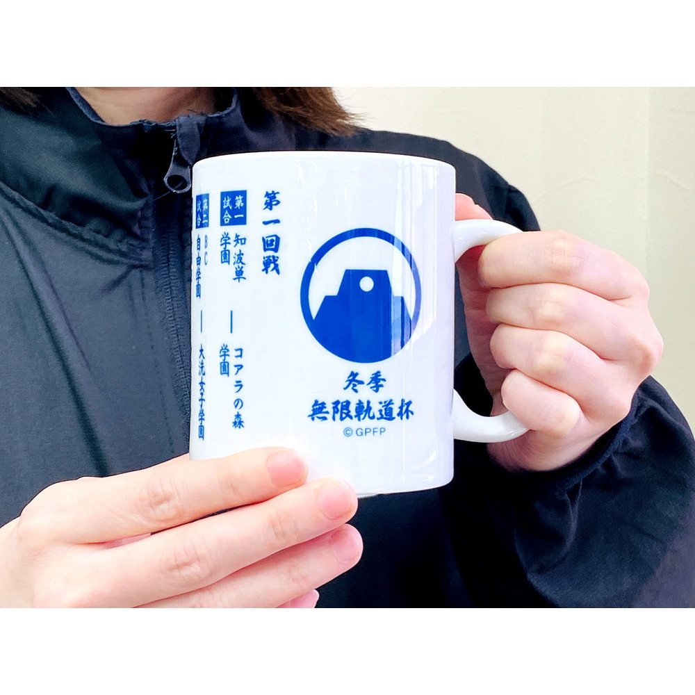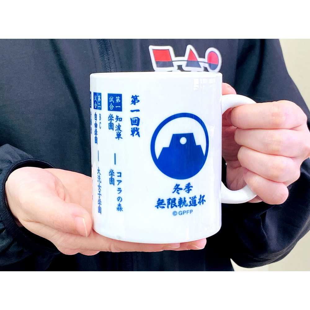 冬季無限軌道杯出場の16チームの校名と『日本戦車道連盟』のマークをデザインしたマグカップです。