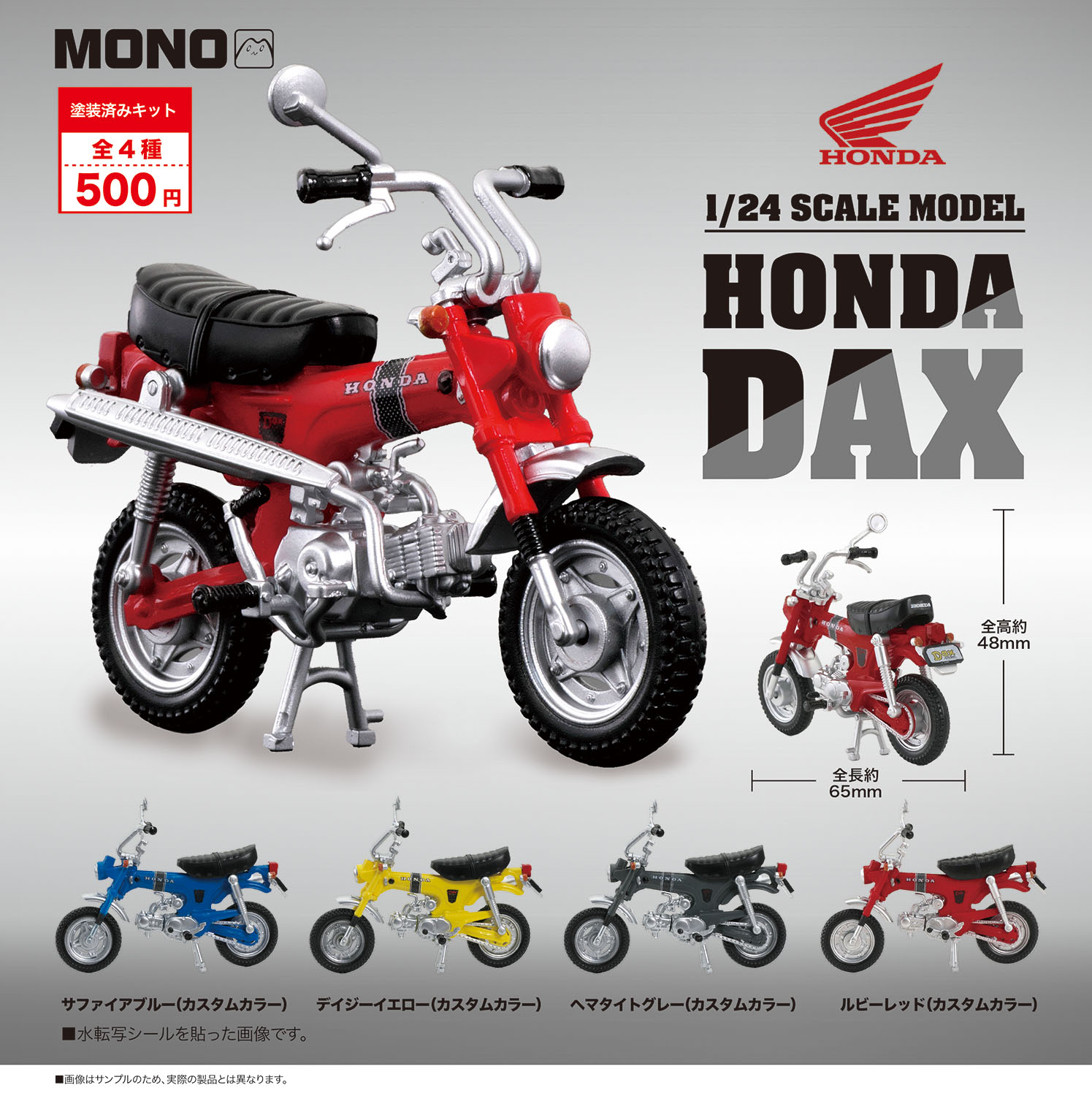 その記念すべき年に、ホンダの名車バイク「ダックス」を完全新金型の1/24スケールでカプセルトイ化いたします。